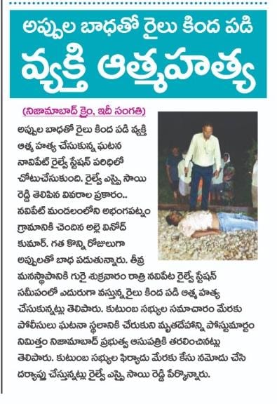 తీవ్ర మనస్థాపానికి గురై శుక్రవారం రాత్రి నవిపేట రైల్వే స్టేషన్ సమీపంలో ఎదురుగా వస్తున్న రైలు కింద పడి ఆత్మ హత్య చేసుకున్నట్లు తెలిపారు.