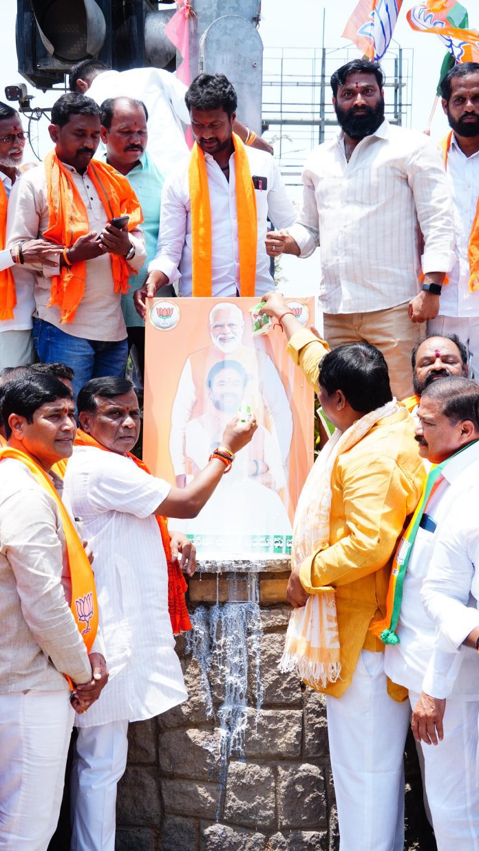 ఈ సందర్బంగా ఎమ్మెల్యే గారు ప్రధానమంత్రి నరేంద్రమోది చిత్రపటానికి, రాష్ట్ర అధ్యక్షులు కిషన్ రెడ్డి చిత్రపటానికి, ఎంపీ అరవింద్ చిత్రపటానికి పాలాభిషేకం చేసారు.