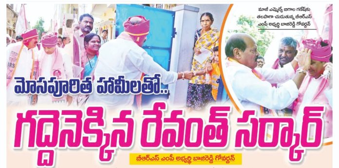 ముఖ్యమంత్రి రేవంత్ రెడ్డి అబద్ధాలు చెప్పి ప్రజలను మోసం చేస్తూ చోద్యం చూస్తున్నారన్నారు కరెంటు రాక, నీళ్లు రాక పొలాలు ఎండిపోయి రైతులు ఆత్మహత్యలు చేసుకుంటే దేవుళ్ళ మీద ఓట్లు వేసి అబద్ధాలు చెబుతున్నారు బిజెపి ఎంపీ వచ్చిన 100 రోజుల్లో పసుపు బోర్డు తీసుకువస్తానని బాండ్ పేపర్ ఇచ్చి ఐదు సంవత్సరాలైనా ఏమి చేయలేకపోయారు.