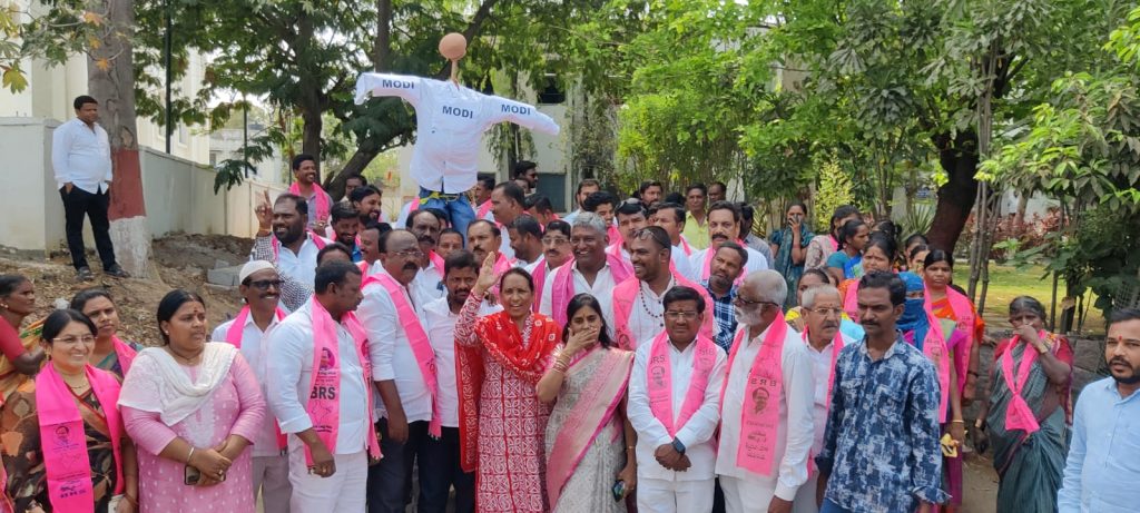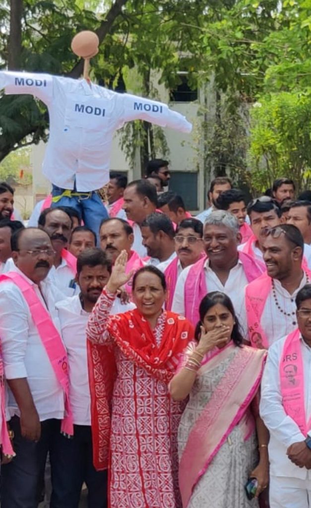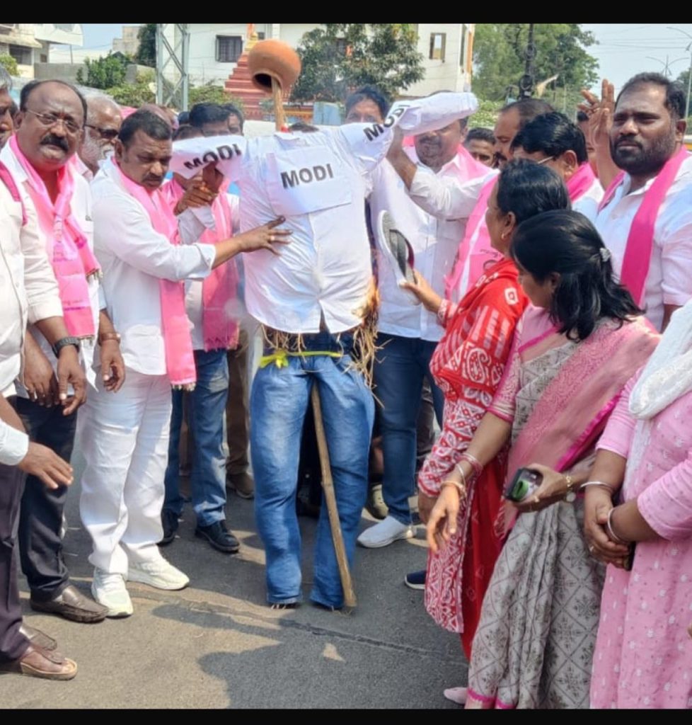 లిక్కర్ కేసులో ఎమ్మెల్సీ కవిత అరెస్ట్ ను నిరసిస్తూ శనివారం బిఆర్ యస్ శ్రేణులు నిజామాబాద్ జిల్లా కేంద్రంలో ఆందోళన నిర్వహించారు. ప్రధాని మోడీ దిష్టి బొమ్మ ను దగ్డం చేసారు.జడ్పి ఛైర్మెన్ విఠల్ రావు సుజిత్ ఠాకూర్ మహిళా నేతలు విజయ లక్ష్మి తదితరులు పాల్గొన్నారు.