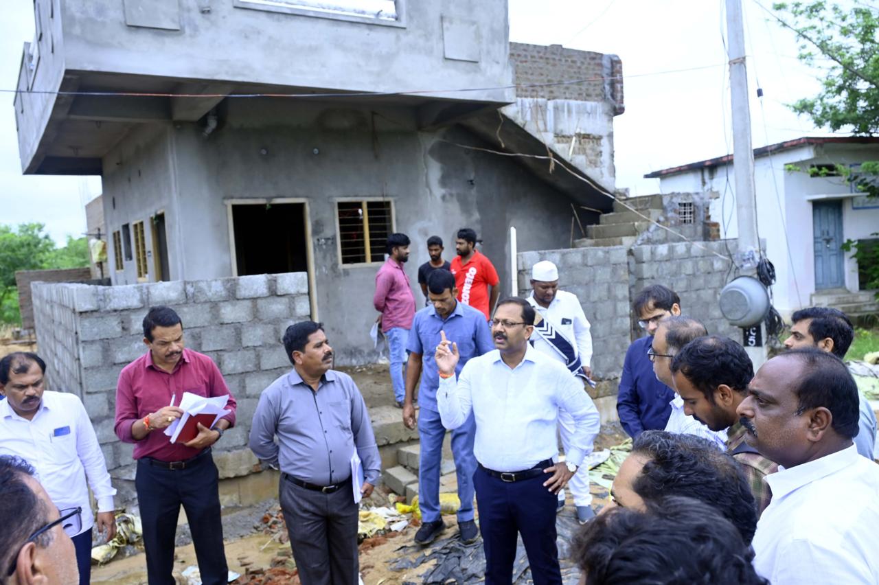 నిజామాబాద్ జిల్లా ఎడపల్లి మండలం జైతాపూర్ గ్రామంలో నిర్మాణాలు పూర్తి చేసుకుని ప్రారంభోత్సవాలకు సిద్ధంగా ఉన్న ఇందిరమ్మ ఇళ్లను కలెక్టర్ టి.వినయ్ కృష్ణారెడ్డి మంగళవారం అదనపు కలెక్టర్ అంకిత్, బోధన్ సబ్ కలెక్టర్ వికాస్ మహతోతో కలిసి పరిశీలించారు.