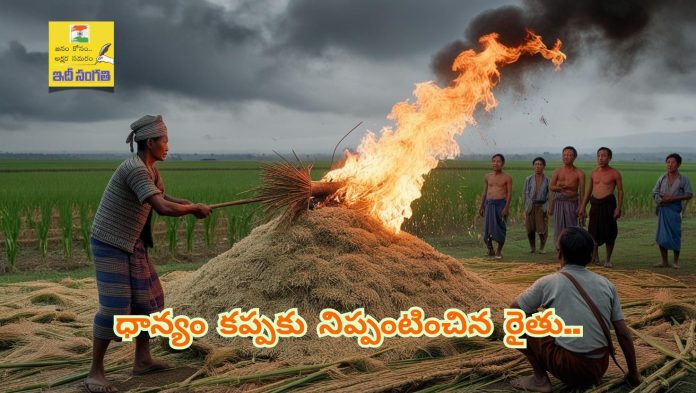 ధాన్యం కప్పకు నిప్పంటించిన రైతు..ధాన్యాన్ని విక్రయించేందుకు అన్నదాతలు అరిగోస పడుతున్నారు. ధాన్యం కొనుగోళ్లలో అధికారులు జాప్యం చేస్తున్నారని ఓ రైతు వరి కుప్పకు నిప్పంటించాడు.