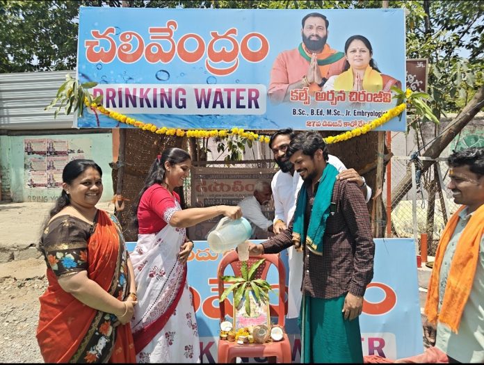 27వ డివిజన్ కార్పొరేటర్ కల్పే అర్చనతో కలిసి స్రవంతి రెడ్డి రిబ్బన్ కట్ చేసి ఈ సేవా కార్యక్రమానికి శ్రీకారం చుట్టారు. ఈ సందర్భంగా స్రవంతి రెడ్డి మాట్లాడుతూ.. ప్రతి ఏటా వేసవిలో క్రమం తప్పకుండా చలివేంద్రాన్ని ఏర్పాటు చేస్తూ సామాజిక బాధ్యతను చాటుకుంటున్న చిరంజీవిని ప్రత్యేకంగా అభినందించారు.
