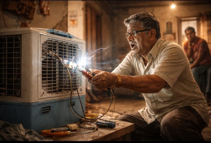 విద్యుత్ షాక్ తో వ్యక్తి మృతి..— కూలర్ మరమ్మత్తులు చేస్తుండగా ఘటన..