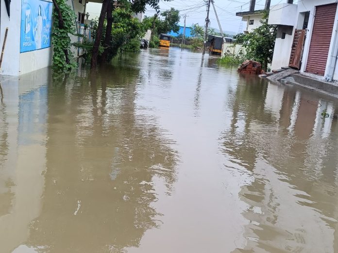 రోడ్డుపై నీటి ప్రవాహం భారీగా ఉన్నందున వాహనాదారుల రాకపోకలకు అంతరాయం ఏర్పడుతోంది. రోడ్డుకు ఇరువైపులా ఉన్న షాప్ లలో కి నీరు చేరడంతో తీవ్ర ఇబ్బందులకు గురవుతున్నారు.