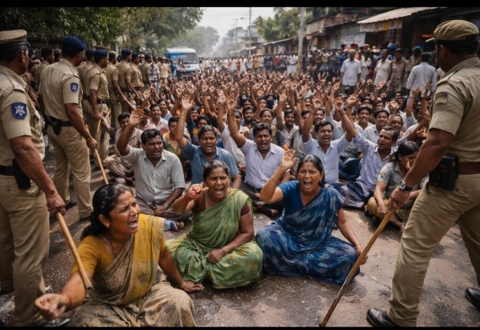 అంత్యక్రియలు నిర్వహించేందుకు నిరాకరించారు. నిందితులను వెంటనే అరెస్ట్ చేసి, తమకు న్యాయం చేయాలని డిమాండ్ చేస్తూ రోడ్డుపై బైఠాయించారు.హత్య జరిగి రోజులు గడుస్తున్నా నిందితులను ఎందుకు అరెస్ట్ చేయడం లేదని బాధితులు పోలీసులను ప్రశ్నించారు. ఒకవైపు నిందితులను అరెస్ట్ చేయకుండా, మరోవైపు వారి ఇళ్ల చుట్టూ భారీగా పోలీసు బలగాలను మోహరించి వారికే రక్షణ కల్పించడం ఏంటని బంధువులు ఆగ్రహం వ్యక్తం చేశారు. “మాకు న్యాయం జరిగే వరకు కదిలేది లేదు..
