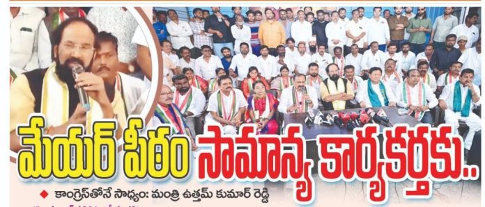 ఒక సామాన్య కార్యకర్తను మేయర్ పీఠంపై కూర్చోబెట్టడం కేవలం కాంగ్రెస్ పార్టీతోనే సాధ్యమని రాష్ట్ర నీటి పారుదల శాఖ మంత్రి, నిజామాబాద్ ఎన్నికల ఇంచార్జి ఉత్తమ్ కుమార్ రెడ్డి స్పష్టం చేశారు. సోమవారం నిజామాబాద్ జిల్లా కాంగ్రెస్ భవన్లో పీసీసీ చీఫ్ మహేష్ కుమార్ గౌడ్ సమక్షంలో జరిగిన విలేకరుల సమావేశంలో ఆయన మాట్లాడారు.