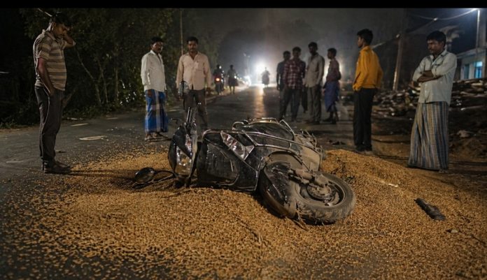 తిరిగి రాత్రి సమయంలో స్కూటీపై నిజామాబాద్కు వస్తుండగా మోస్రా శివారులో రోడ్డుపై ఉన్న వడ్ల కుప్పను వీరి వాహనం బలంగా ఢీకొట్టింది. ఈ క్రమంలో వెనుక కూర్చున్న దేవిరెడ్డి వాహనంపై నుంచి రోడ్డుపై పడటంతో తలకు బలమైన గాయాలయ్యాయి.