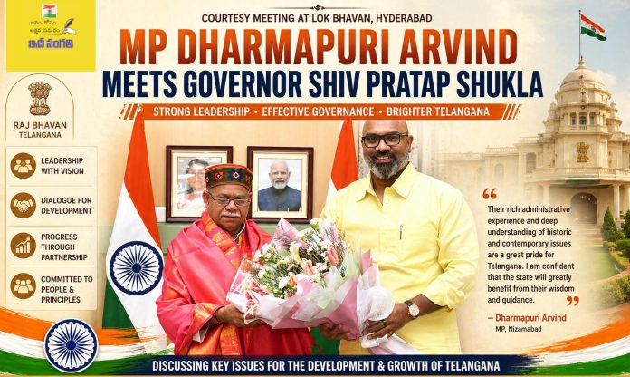 తెలంగాణ రాష్ట్ర గవర్నర్ శివ్ ప్రతాప్ శుక్లాను నిజామాబాద్ పార్లమెంటు సభ్యుడు ధర్మపురి అరవింద్ గురువారం మర్యాదపూర్వకంగా కలిశారు. హైదరాబాద్లోని లోక్ భవన్లో జరిగిన ఈ భేటీలో అయ్యారు.