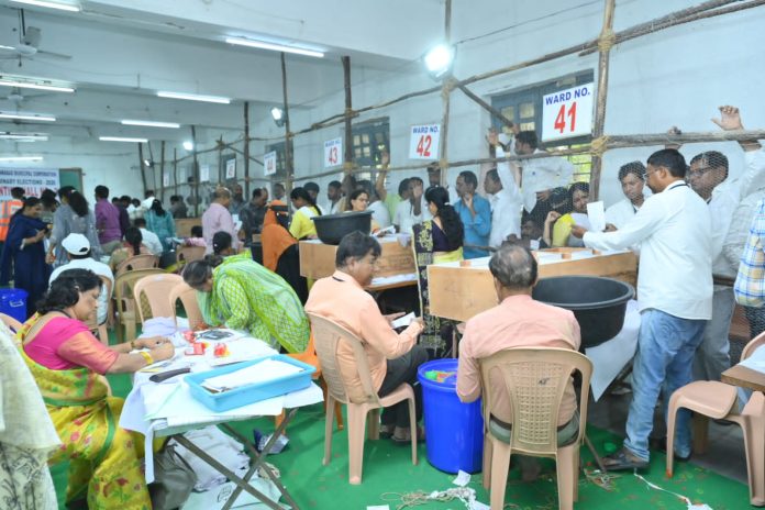 జిల్లా ఎన్నికల అధికారి, కలెక్టర్ ఇలా త్రిపాఠి నేతృత్వంలో అదనపు కలెక్టర్ కిరణ్ కుమార్, సబ్ కలెక్టర్లు వికాస్ మహతో, అభిగ్యాన్ మాల్వియ, ఎన్నికల అబ్జర్వర్ సీహెచ్. సత్యనారాయణ రెడ్డి, నగర పాలక సంస్థ కమిషనర్ దిలీప్ కుమార్, ఇతర జిల్లా అధికారులు కౌంటింగ్ ప్రక్రియను నిశిత పర్యవేక్షణ జరిపారు. ఉదయం 7.00 గంటల నుండే కౌంటింగ్ కోసం సన్నాహాలు చేపట్టారు.