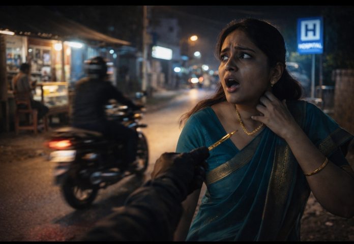 నగరంలో గురువారం రాత్రి చైన్ స్నాచింగ్ ఘటన చోటుచేసుకుంది. స్థానికుల తెలిపిన సమాచారం మేరకు.. దంపతులు ఇద్దరు ప్రగతి ఆసుపత్రికి వచ్చి వెళ్తున్న క్రమంలో పక్కనే ఉన్న టీ తాగుతున్నారు.