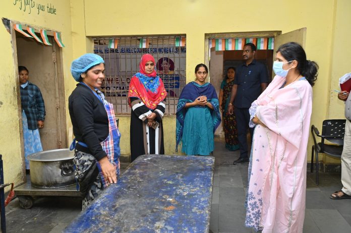నిజామాబాద్, మార్చి 12 : నిజామాబాద్ జిల్లా కేంద్రంలోని నాగారంలో గల ప్రభుత్వ గిరిజన సంక్షేమ మహిళా డిగ్రీ కళాశాలను కలెక్టర్ ఇలా త్రిపాఠి గురువారం ఆకస్మికంగా తనిఖీ చేశారు. కిచెన్, డైనింగ్ హాల్ లను సందర్శించి నిర్వహణ తీరుతెన్నులను నిశితంగా పరిశీలించారు. విద్యార్థినుల కోసం వండిన అన్నం, ఇతర ఆహార పదార్థాల నాణ్యతను తనిఖీ చేశారు. కిచెన్ శుభ్రంగా ఉంచుకోవాలని, లేని పక్షంలో ఈగలు, దోమలు వృద్ధి చెంది వ్యాధులు ప్రబలేందుకు ఆస్కారం ఉంటుందన్నారు.