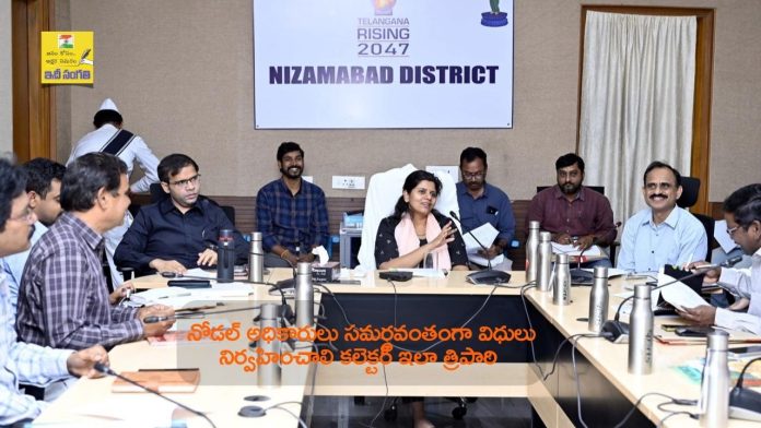 నిజామాబాద్, జనవరి 24 : రానున్న మున్సిపల్ ఎన్నికల నిర్వహణలో నోడల్ అధికారులు వారికి కేటాయించిన విధులను ఎలాంటి పొరపాట్లకు తావివ్వకుండా పూర్తి బాధ్యతతో సమర్థవంతంగా నిర్వహించాలని కలెక్టర్ ఇలా త్రిపాఠి సూచించారు. శనివారం మున్సిపల్ ఎన్నికల నిర్వహణ సన్నద్ధతపై కలెక్టరేట్ లోని వీ.సీ హాల్ లో నోడల్ అధికారులతో కలెక్టర్ శనివారం సమీక్ష నిర్వహించారు.