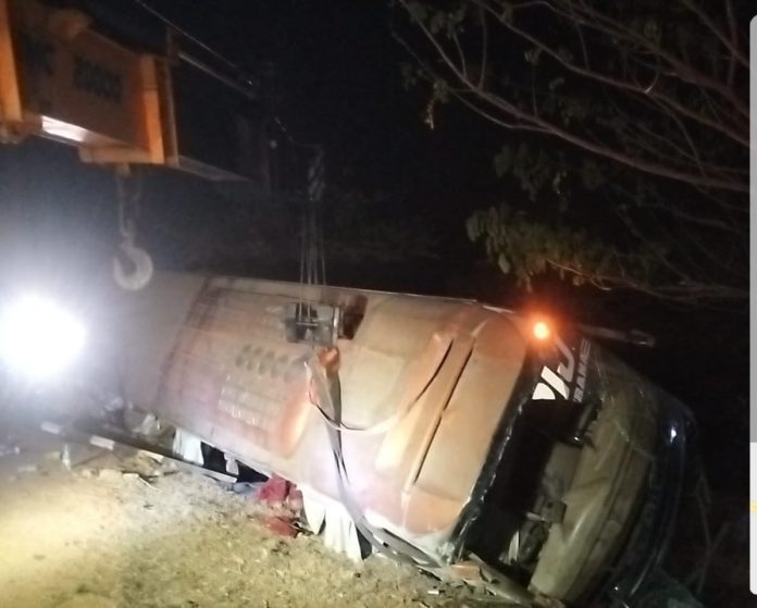 నిజామాబాద్ జిల్లా ఇందల్వాయి మండలం గన్నారం ప్లాంట్ హైదారాబాద్ నుండి మహరాష్ట్ర వైపు వెలుతున్న ఖురాణ ప్రైవేట్ ట్రావెల్స్ బస్సు బోల్తాపడి ముగ్గురు మృతి చెందినట్టు సమాచారం. పదిమందికి పైగా తీవ్ర గాయాలయ్యాయి.