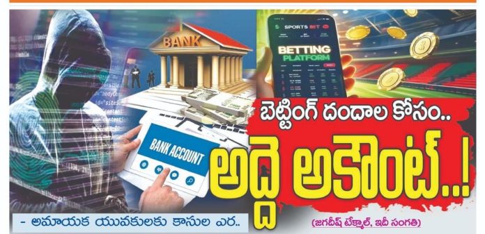 ఇటీవలే ఓ బెట్టింగ్ ముఠా ను పట్టుకున్న పోలీసులు లోతుగా దర్యాప్తు చేస్తే అద్దె ఖాతాల ఉదంతం వెలుగులోకి వచ్చింది ఏడ్ పల్లి మండలం కు చెందిన అరడజన్ మంది యువకులను అదుపులో కి తీసుకోని విచారించడంతో అద్దె ఖాతాల వెనుక సాగుతున్న తతంగం వెల్లడి అయింది.