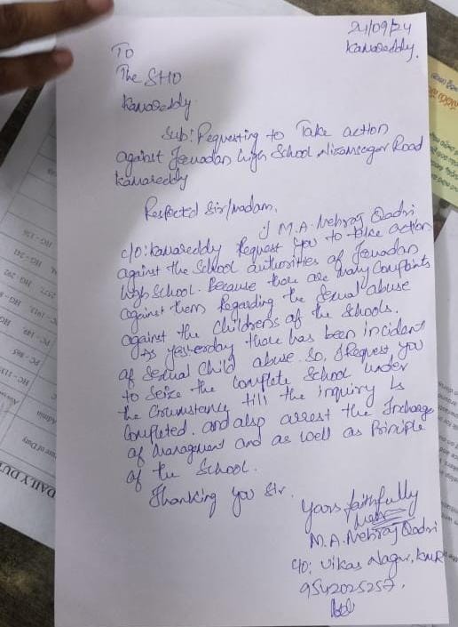 ఆరేళ్ళ చిన్నారిపై లైంగిక దాడి చేసిన ఓ పిఈటీ తీరుపై విద్యార్థి సంఘాల నాయకులు, తల్లిదండ్రులు ఆందోళన కు దిగిన ఘటన కామారెడ్డి జిల్లా కేంద్రంలో జరిగింది. మున్సిపల్ చైర్ పర్సన్ ధర్నా కు దిగడంతో పట్టణంలోని జీవధాన్ పాఠశాలలో ఉద్రిక్తత చోటుచేసుకుంది.