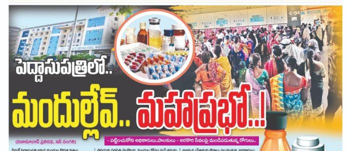 పేరుకే పెద్దా ఆసుపత్రి అక్కడ మందుల కొరత నిత్యం వెంటాడుతున్నది. రోగులకు ఎప్పుడూ ఒకే రకం మందులను అంటగడుతున్నారు. రోగమేదైనా వారి దగ్గర ఉన్న మందులే ఇస్తున్నారు.