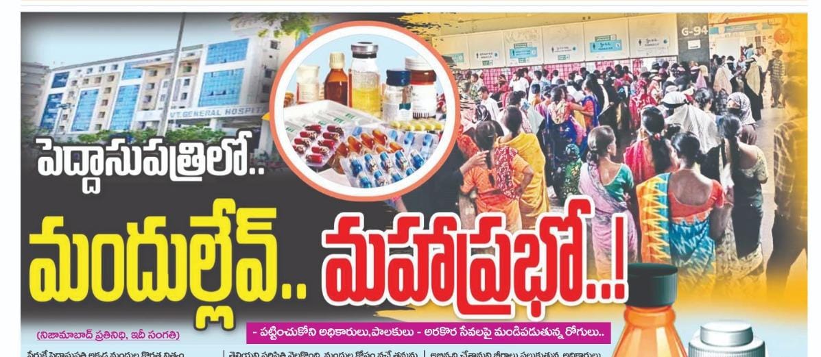 నిజామాబాద్ జిల్లా ఆసుపత్రిలో రోగులకు అందుబాటులో ఉండాల్సిన బీపీ, షూగర్ టాబ్లెట్లు రెండు నెలలుగా అందుబాటులో లేక రోగులు మందుల కోసం ఆస్ప త్రికి వచ్చి ఖాళీ చేతుల్తో వెళ్తున్నారు.