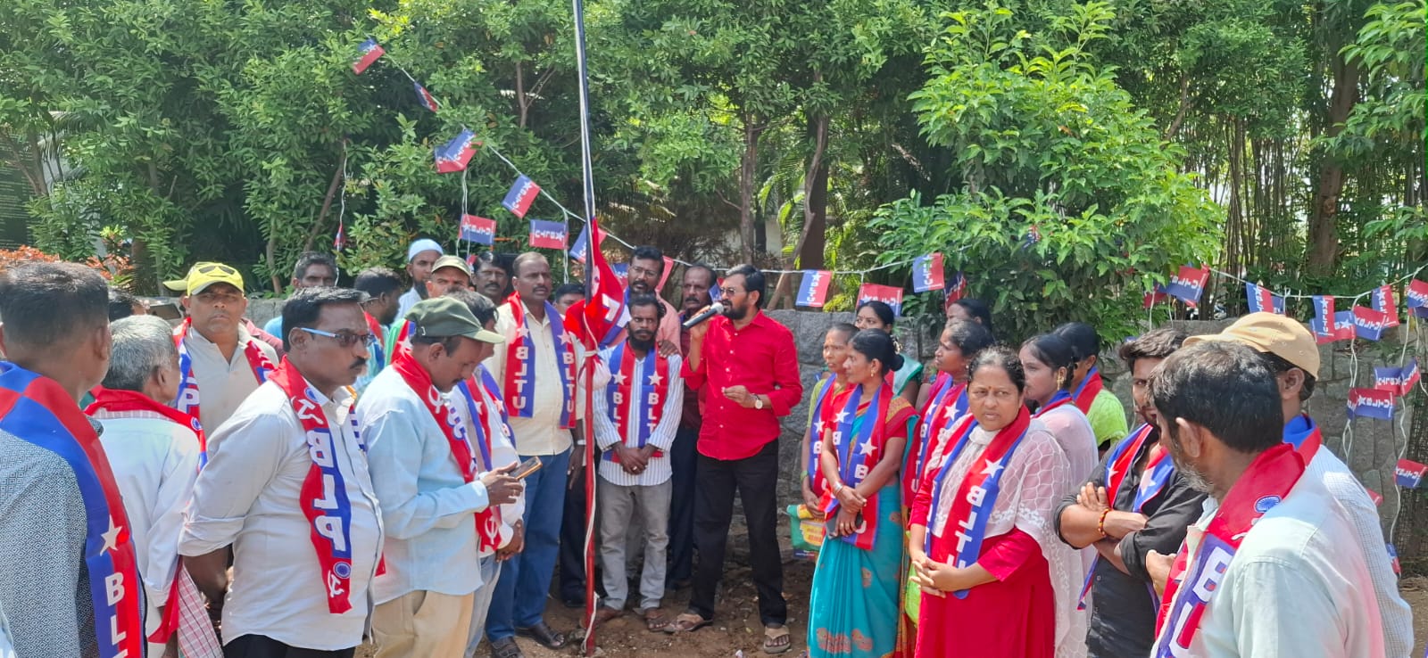 ముందుగా సుభాష్ నగర్ లో గల బహుజన కమ్యూనిస్టు (బిఎల్ పి) జిల్లా కార్యాలయం వద్ద సుత్తి కొడవలి అశోక చక్రంతో కూడిన పార్టీ జెండాను , మున్సిపల్ కార్పొరేషన్ కార్యాలయం వద్ద జరిగిన బిఎల్ టీయూ కార్మిక జెండాను దండి వెంకట్ ఆవిష్కరించారు .