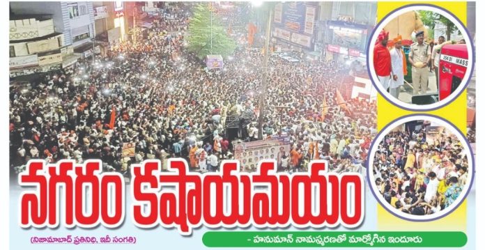 శోభాయాత్రలో హిందూ సంఘాల నాయకులు, యువకులు ఎంతో ఉత్సాహంగా అడుగడు గునా అంజనీపుత్రుడి కీర్తనలే జైశ్రీరాం. రాంలఖన్ జానకీ.. జై బోలో హనుమాన్ కీ, భజరంగ్ దళ్ అంటూ పెద్ద పెద్ద నినాదాలతో నృత్యాలు చేస్తూ, అంజన్న నామస్మరణతో ఇందూరు మారుమోగుతుంది.