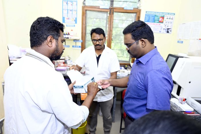 వివిధ విభాగాలను సందర్శించి పనితీరును పరిశీలించారు. ల్యాబోరేటరీ లో రక్త పరీక్షలు నిర్వహిస్తున్న విధానాన్ని గమనించి, టెక్నీషియన్ ను వివరాలు అడిగి తెలుసుకున్నారు. వ్యాధి నిర్ధారణ కోసం స్థానికంగానే యంత్రాలను వినియోగిస్తుండడాన్ని గమనించిన కలెక్టర్ సంతృప్తి వ్యక్తం చేశారు.
