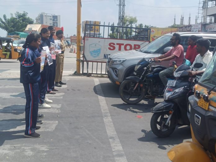 అలాగే సిగ్నల్ వద్ద ఏర్పాటు చేసిన సిగ్నల్ లైన్స్ దాటకూడదని వాహనదారులకు అవగాహన కల్పించారు.