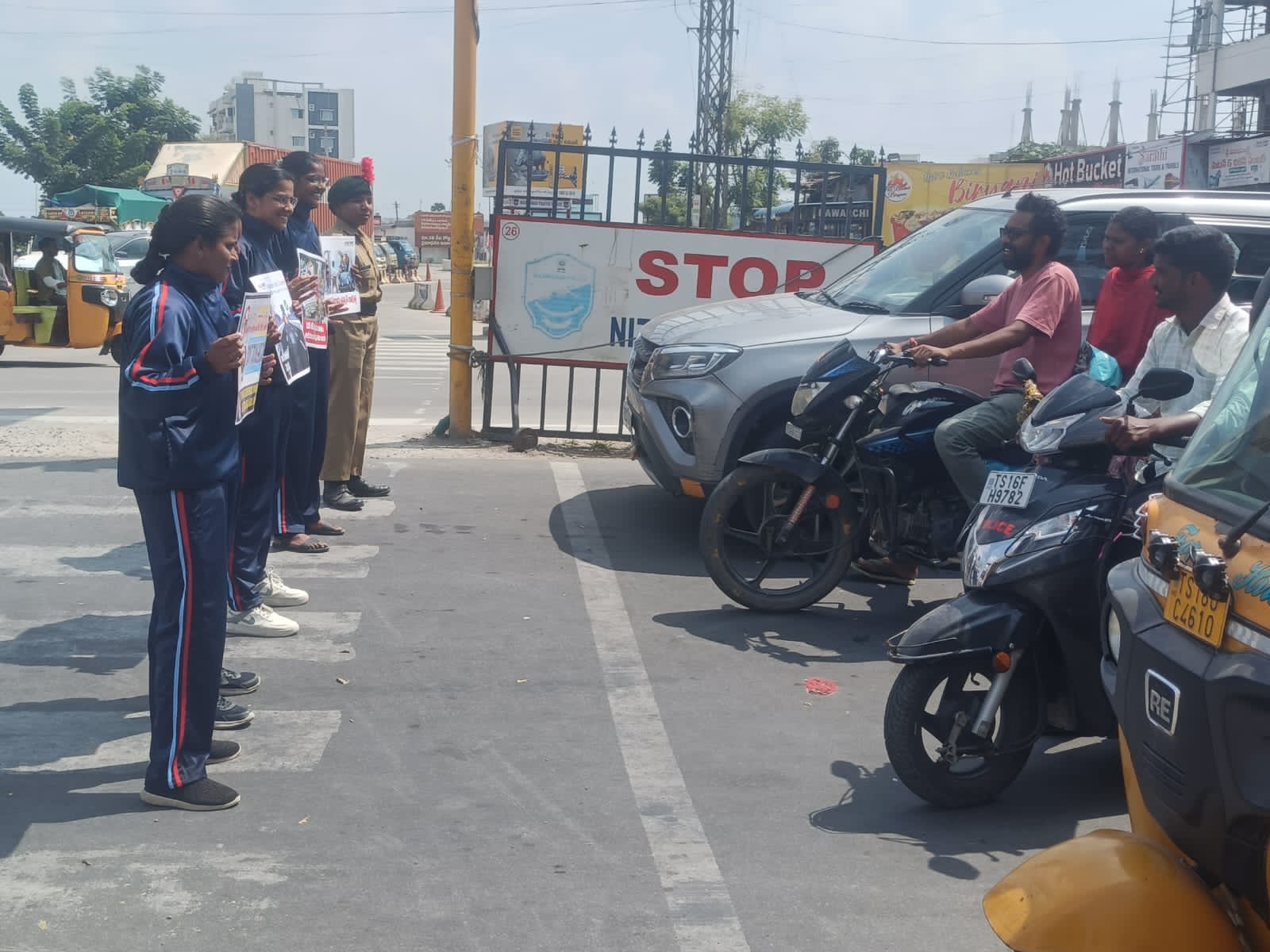 నగరంలోని ద్విచక్ర వాహనదారులు తప్పని సరిగ్గా హెల్మెట్ ధరించాలి ఎన్ సీసీ విద్యార్థులతో ఫ్లకార్డ్ లతో వినూత్న ప్రచారం చేశారు.
