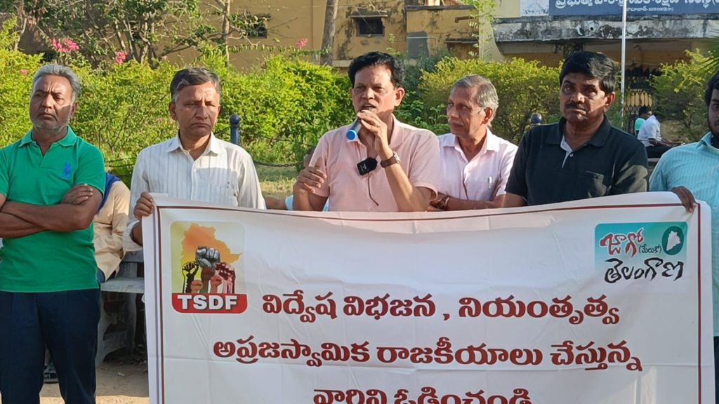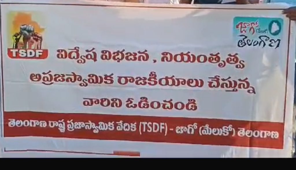 అలాగే ప్రతీకగా స్థానిక న్యూ డెమెక్రసీ నేతలు బీజేపీ డౌన్ డౌన్ నినాదాలు చేసారు. తెలంగాణ రాష్ట్ర ప్రజాస్వామిక వేదిక వ్యవస్థ పాకుడు విశ్రాంత ఐఏఎస్ అధికారి ఆకునూరి మురళి స్థానిక న్యూ డెమెక్రసీ నేతలు ఆకుల పాపయ్య తో కలిసి కేంద్రంలో మోడీ ప్రభుత్వం అనుసరిస్తున్న విద్వేష విభజన అప్రజాస్వామిక రాజకీయాలు ఓడించాలనే నినాదంతో ఐ టి ఐ గ్రౌండ్ లో ఓ సమావేశం నిర్వహించారు .